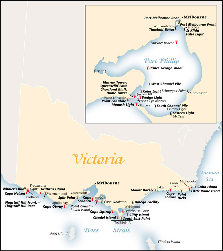 Today, Australia’s capes and headlands are lit by automatic lights which shine in towers or other structures that don’t require lightkeepers keeping the lamps burning from dusk to dawn. These maps of Victoria and South Australia (courtesy of John Ibbotson, author of Lighthouses of Australia Images from the End of an Era) show just how many lights were needed to assist the safe passage of ships in- and out-of Australian ports. Even with these lights, many disastrous wrecks still occurred, often requiring the keepers of the lights to rescue or assist stranded travellers or crew.